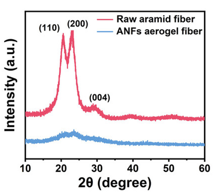 图2. 原始芳纶纤维和ANFs气凝胶纤维的XRD图谱